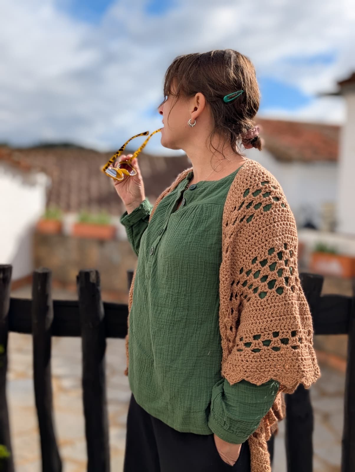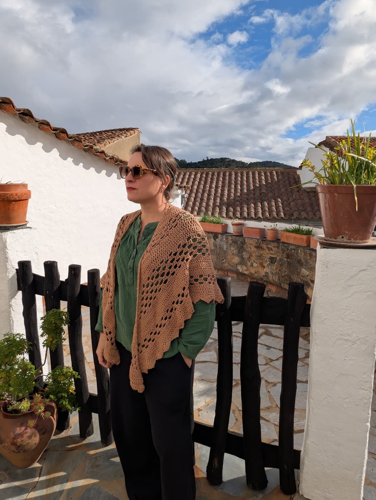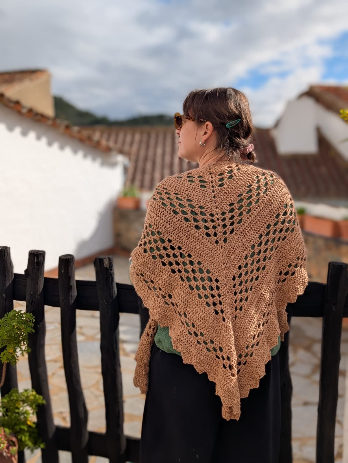 Un chal tamaño maxitejido a crochet ideal para usarlo como pañoleta. Un diseño muy sencillo  ideal para todos los niveles.