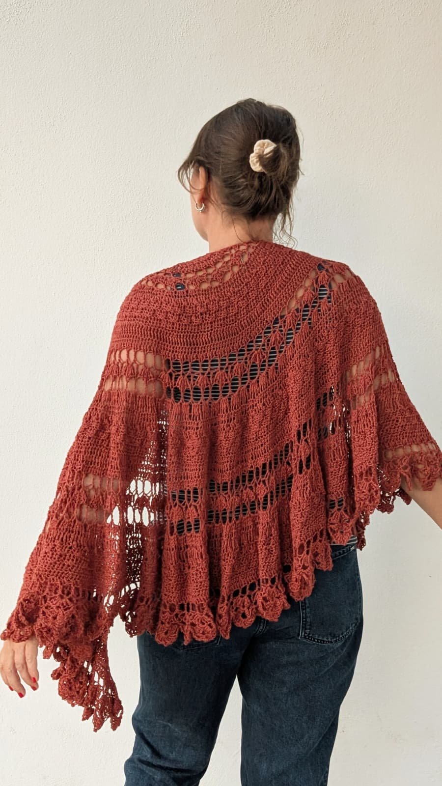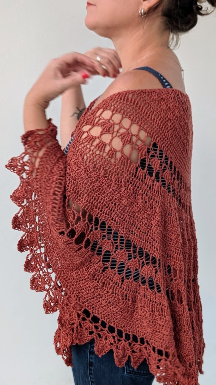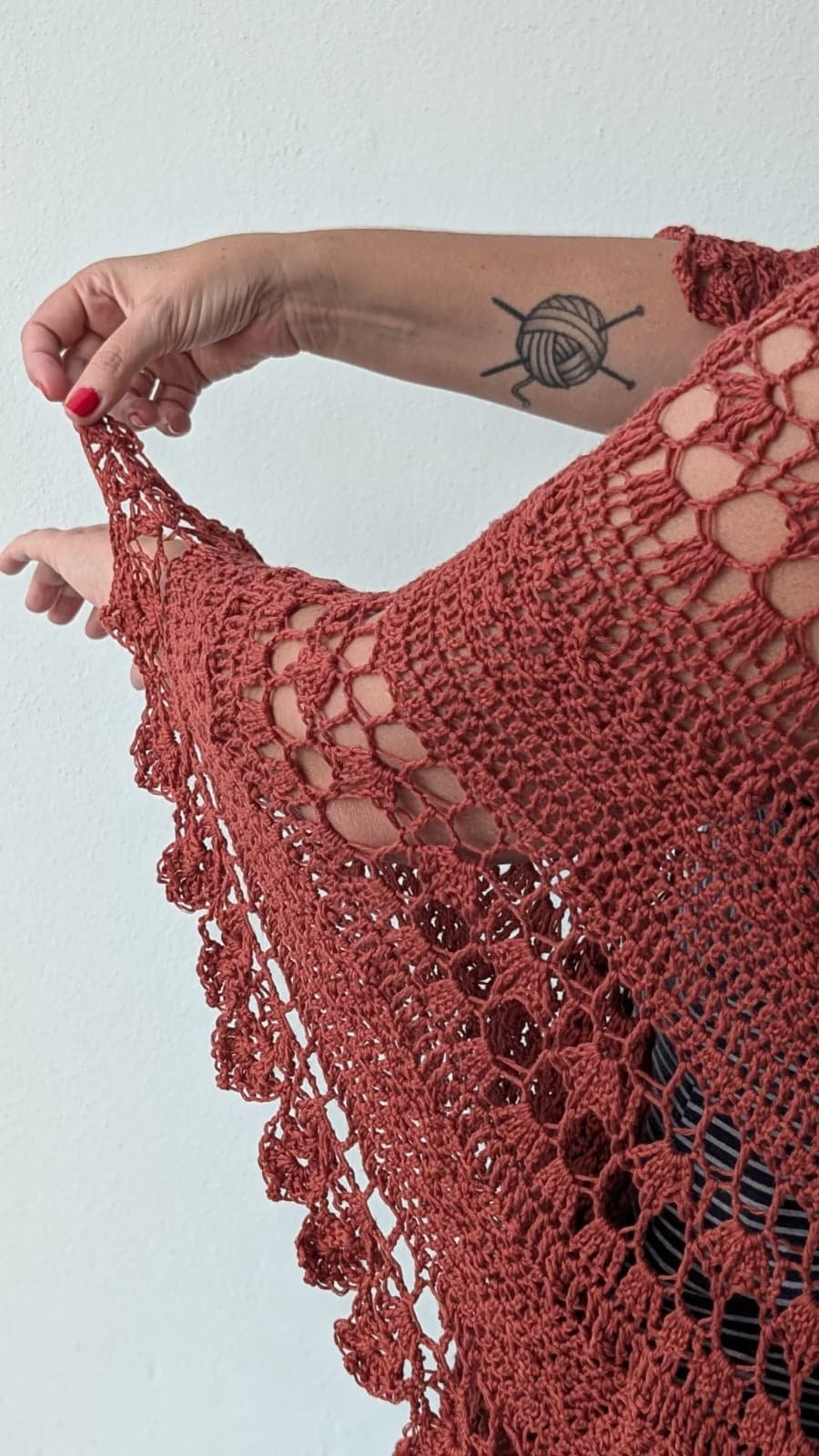 Un chal media luna espectacular que combina bloques de puntos calados que realzan su delicada trama y técnicas que lo hacen súper entretenido de tejer. Un proyecto que puedes tejer en un sólo color o hacerlo en varios tonos.