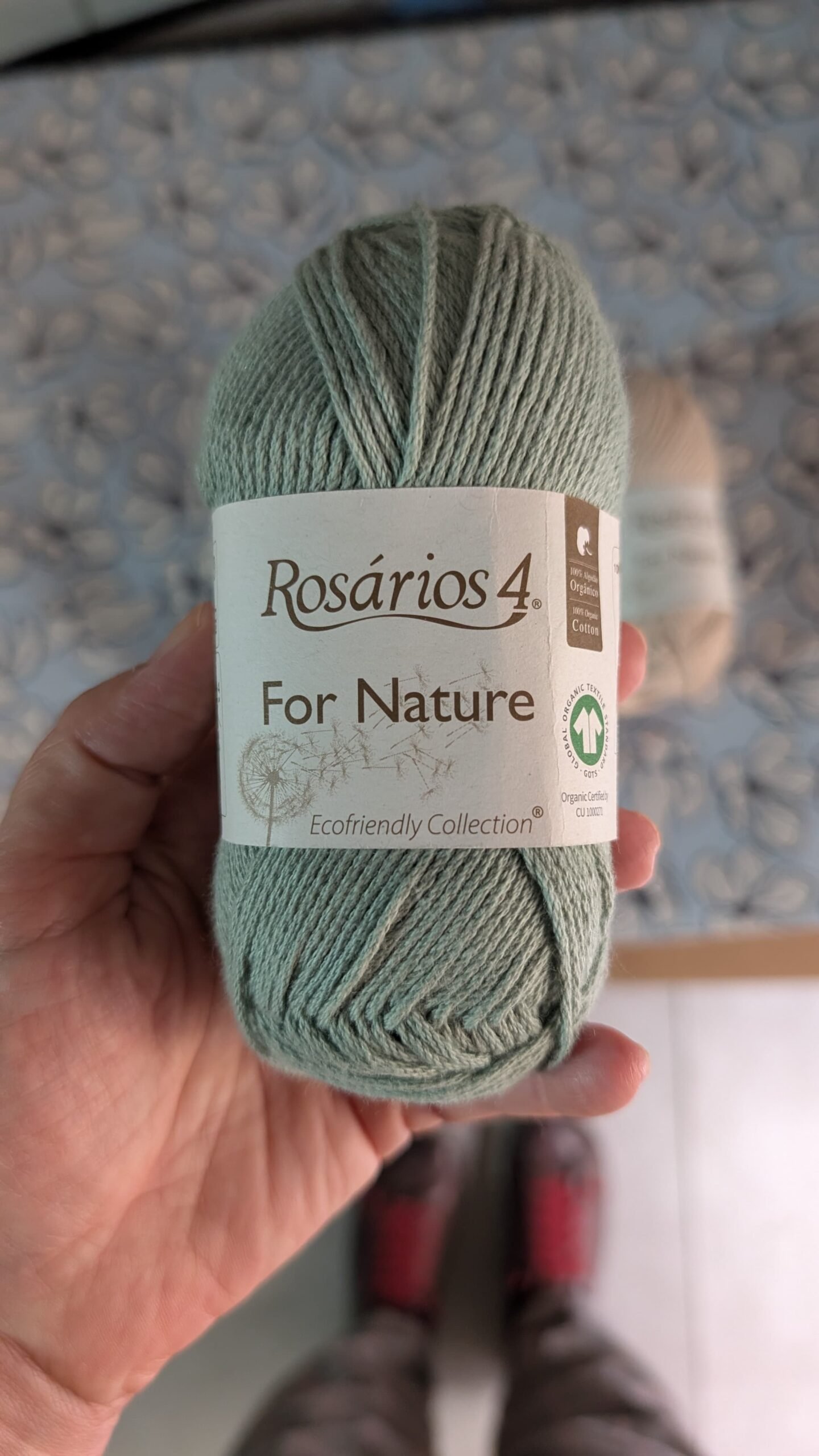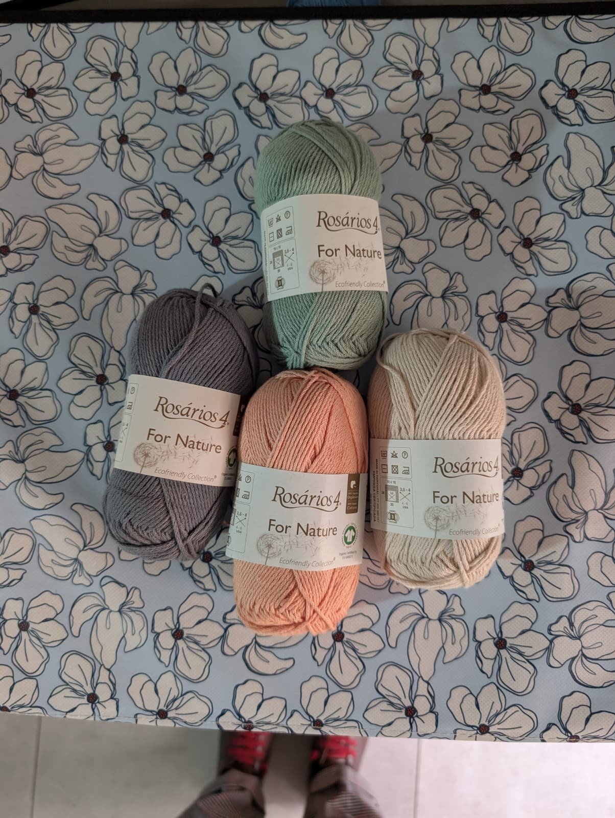 - El material necesario para tejerlo ( 6 ovillos de For Nature en 4 colores diferentes)