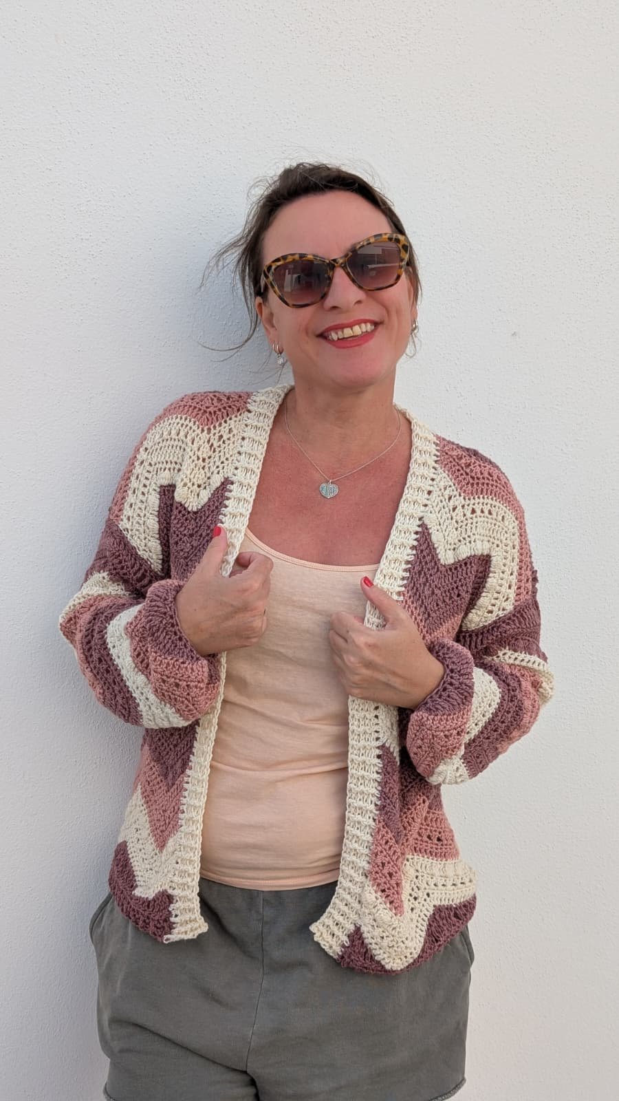Descubre la Chaqueta Ziggy tejida a crochet, una prenda única y artesanal que combina estilo y confort para esta temporada otoño-invierno.