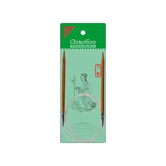Estas agujas circulares de punto ChiaoGoo con acabado satinado están hechas con bambú ecológico, ligero y sostenible, combinado con un cable de nylon extremadamente flexible (sin memoria). La madera de bambú, blanda pero resistente, se desliza estupendamente