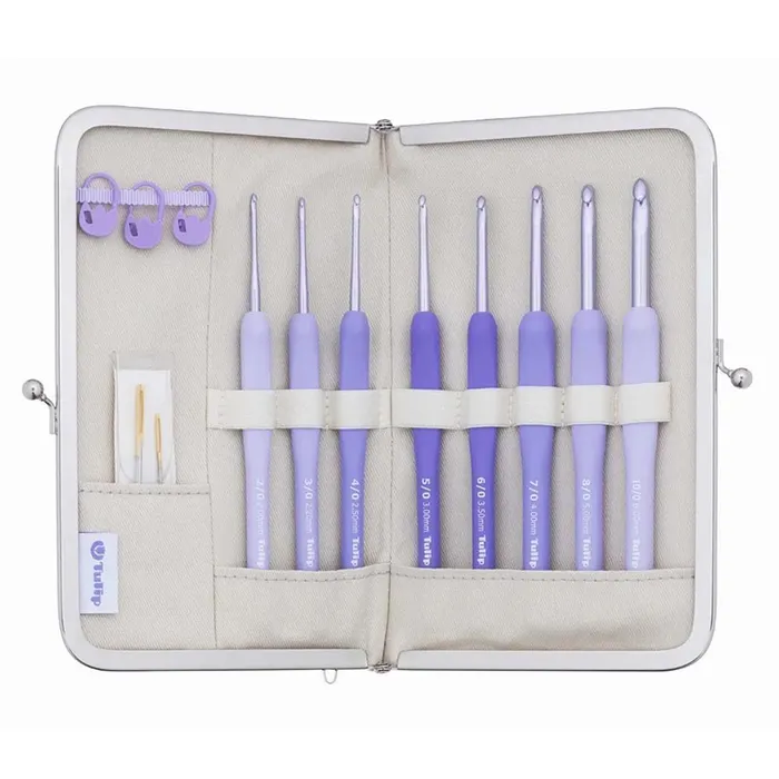 El exclusivo Set de Ganchillos Tulip Etimo Murasaki Softgrip ofrece elegancia japonesa y comodidad ergonómica en un set premium. Incluye 8 ganchillos en tonos púrpura Murasaki, con mango Softgrip antideslizante, puntas de aluminio pulido, accesorios y estuche organizador. ¡Ideal para crocheteras exigentes!