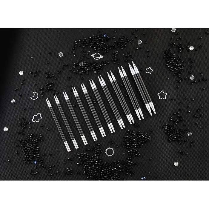El set Karbonz Elan de Edición Limitada es un precioso juego de agujas de tejer intercambiables con puntas, cables y accesorios Karbonz renovados, todo ello presentado en un elegante estuche. Las agujas de este set están hechas de fibra de carbono y puntas metálicas. El carbono es un material ligero, resistente y duradero, además de atractivo.